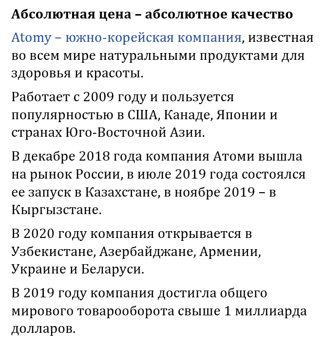 • ATOMY - КОМПАНИЯ, КОТОРАЯ